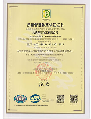 大慶華營化工有限公司成立于2006年7月10日,注冊資金3300萬元,公司類型為有限責(zé)任公司。位于大慶高新技術(shù)產(chǎn)業(yè)開發(fā)區(qū)宏偉園區(qū),是一家集油田助劑產(chǎn)品的研發(fā)、生產(chǎn)、銷售和技術(shù)服務(wù)為一體的現(xiàn)代化高新技術(shù)企業(yè)。公司注重科技創(chuàng)新,公司擁有18項自主知識產(chǎn)權(quán)。企業(yè)承擔(dān)過國家火炬計劃重點項目、國家科技型中小企業(yè)創(chuàng)新項目等,2011年被科技部火炬高新技術(shù)產(chǎn)業(yè)開發(fā)中心評為國家火炬計劃重點高新技術(shù)企業(yè)。公司十余種產(chǎn)品獲得中國石油天然氣集團(tuán)公司產(chǎn)品質(zhì)量認(rèn)可證書,其中粘穩(wěn)型驅(qū)油劑獲國家火炬計劃重點項目證書。公司憑借多年對大慶油田及周邊油田地質(zhì)情況的研究,可針對各油田地層特點調(diào)整產(chǎn)品的配方,更好地發(fā)揮各類油田助劑的性能。